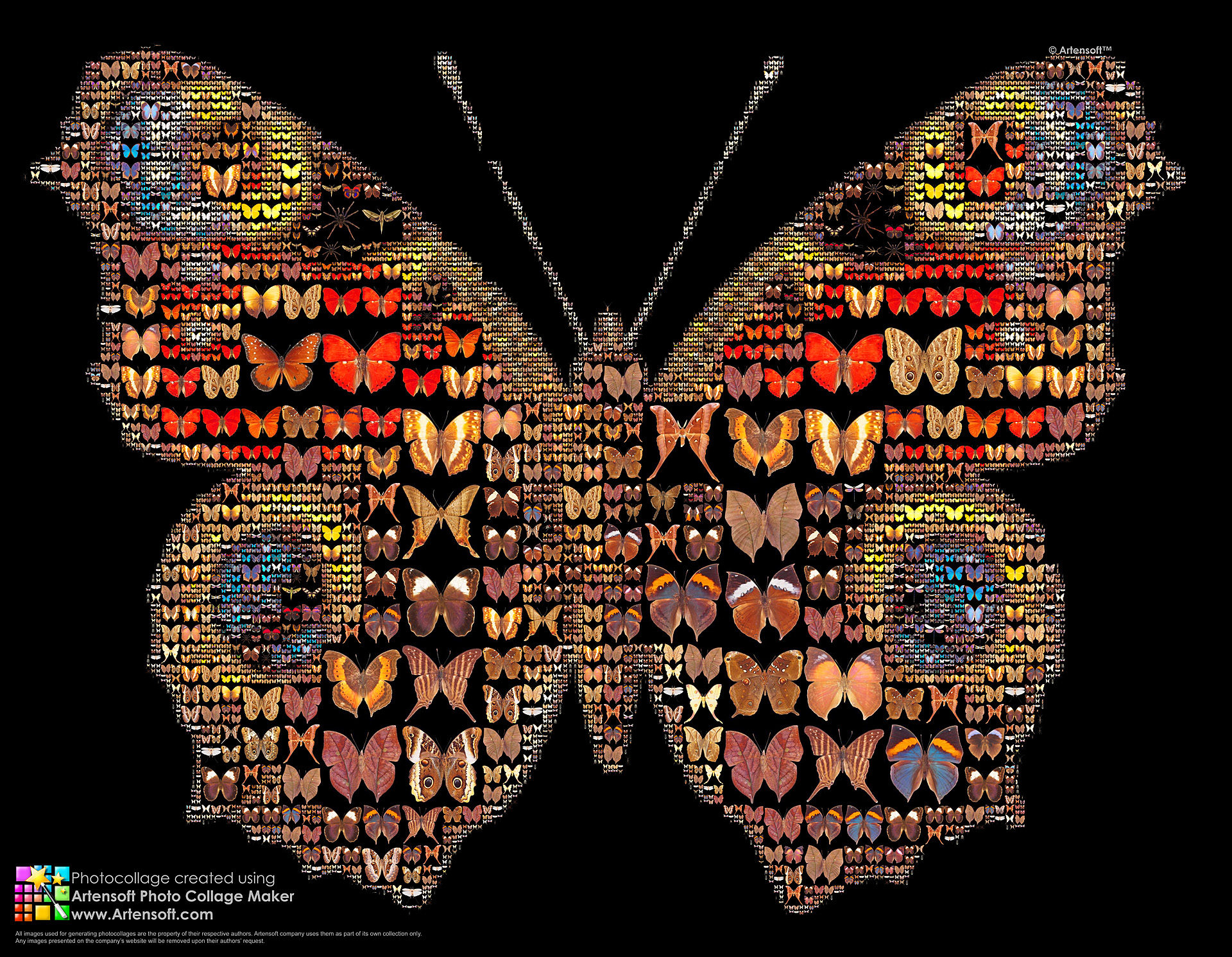 Photocollage created using butterfly images on black background. Download full size (extra large) photo collage here (9809x7613 pixels, 18Mb)