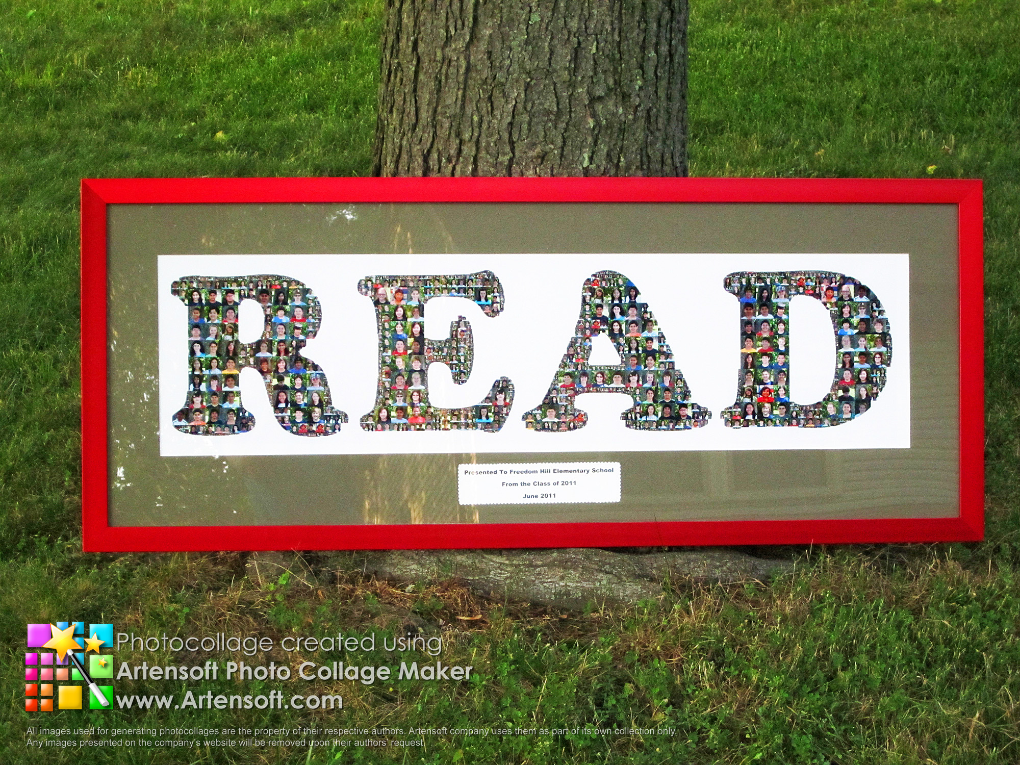 Word READ photo collage (putting photos in letters) created using Photo Collage Maker